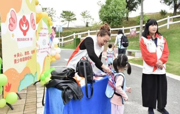 本場親子趣味馬拉松,全程設置了六個必經(jīng)打卡點、四個自選趣味游戲,運動員們需要依次到達并集齊六個印章,才能在終點處兌換小禮品。在終點處設有非物質(zhì)文化遺產(chǎn)項目《西區(qū)客家艾粄制作技藝》,小朋友與家長們紛紛上前嘗試制作、品嘗美味的艾粄。