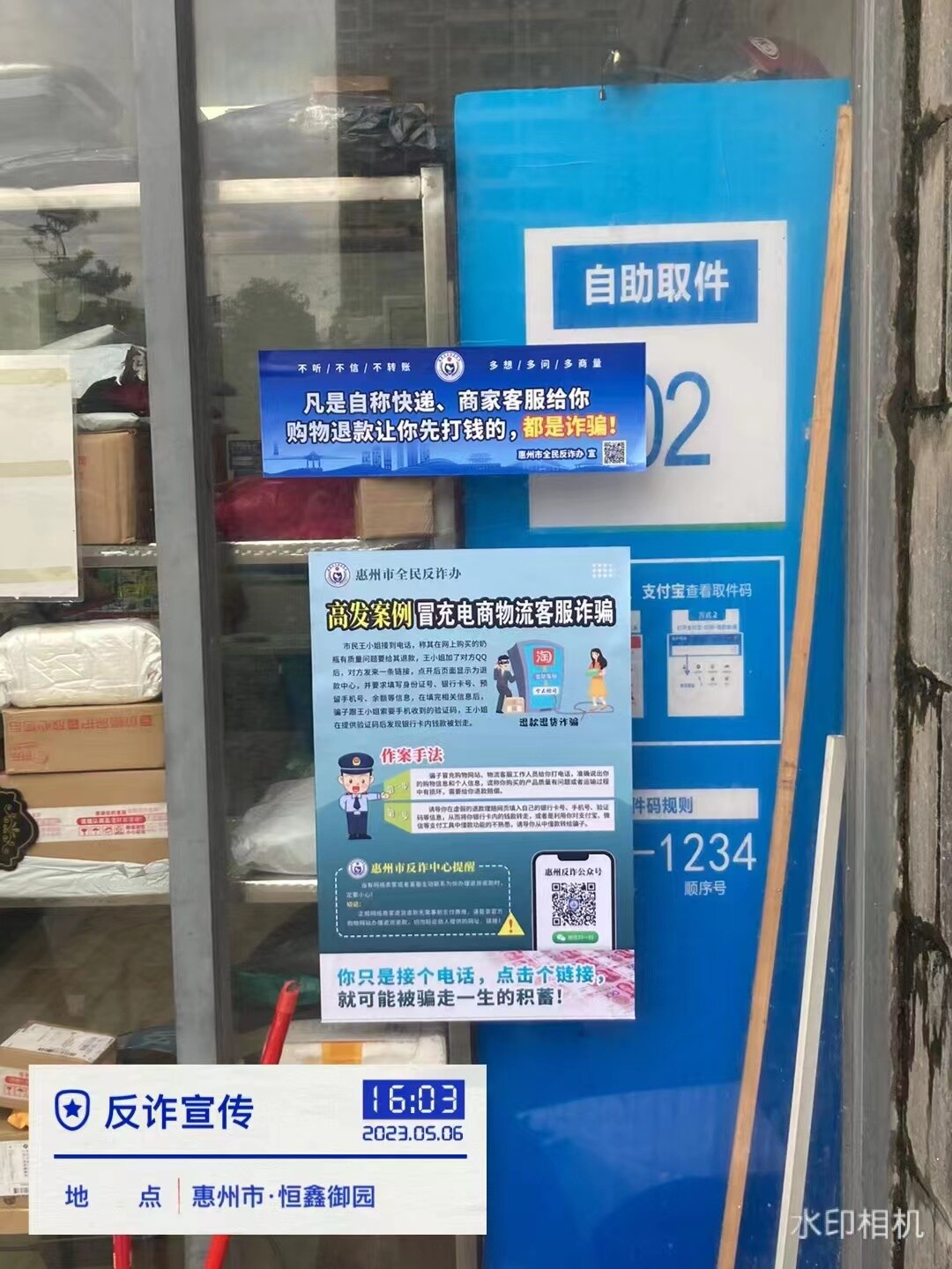 一是在283個快遞驛站和豐巢柜張貼反詐宣傳海報,加上代收點共張貼海報356張,做到轄區(qū)快遞點反詐宣傳全覆蓋。