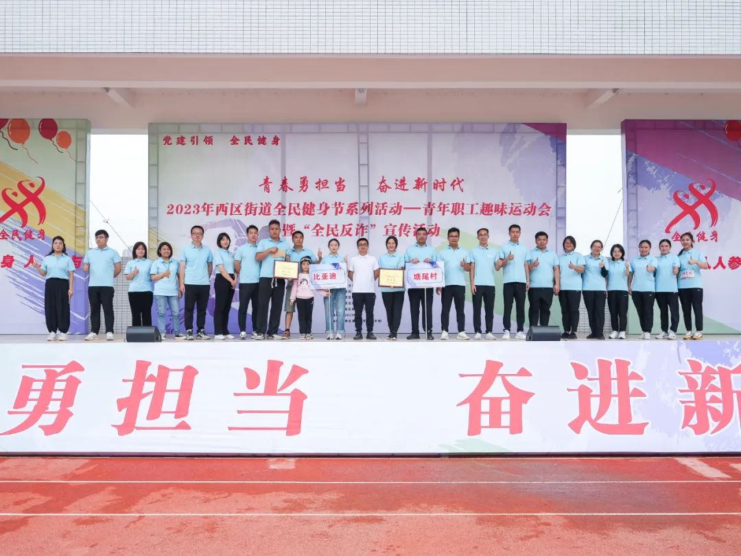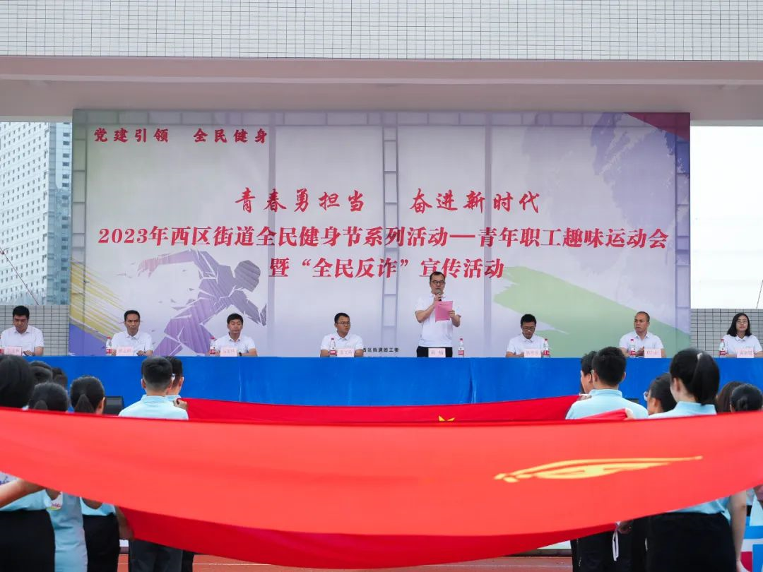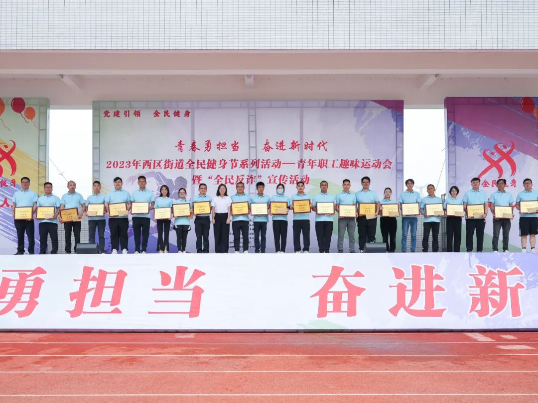 奮進新時代”主題的西區(qū)街道全民健身節(jié)系列活動——青年職工趣味運動會暨“全民反詐”宣傳活動。比賽由各村社區(qū)代表、街道黨支部代表、企業(yè)人員共400余人組成,獎項設(shè)置一、二、三等獎及優(yōu)秀獎。