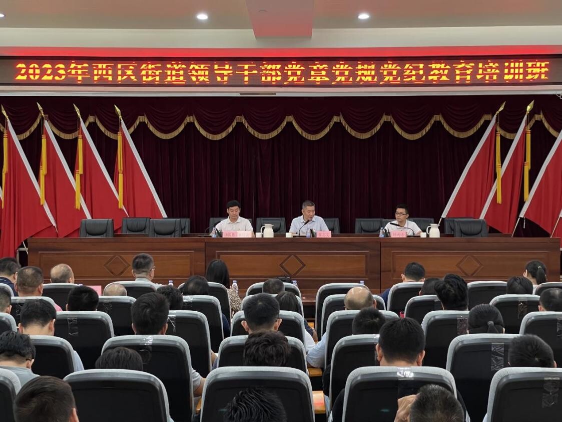 近日,西區(qū)街道組織召開2023年街道領(lǐng)導(dǎo)干部黨章黨規(guī)黨紀教育培訓(xùn)班,街道班子領(lǐng)導(dǎo)、駐村負責(zé)人、村(社區(qū))書記及小組長共180余人參加了培訓(xùn)。,會議傳達學(xué)習(xí)全省、全市、全區(qū)領(lǐng)導(dǎo)干部黨章黨規(guī)黨紀教育培訓(xùn)班精神,街道黨工委書記張志文同志作了專題輔導(dǎo)報告。