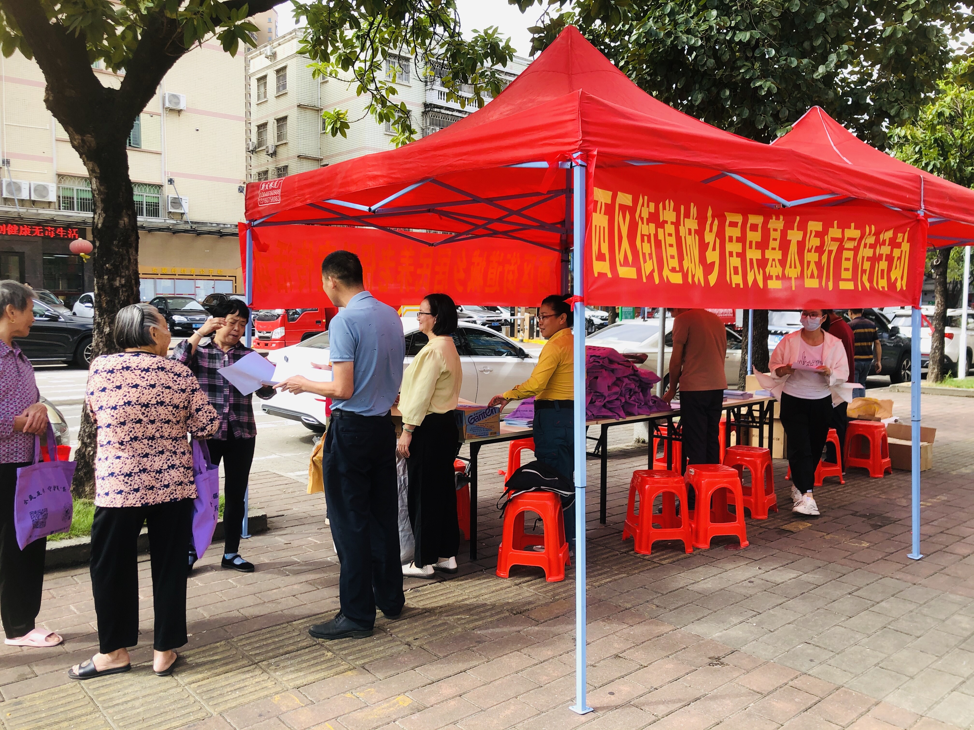 為扎實(shí)做好2023年城鄉(xiāng)居民基本養(yǎng)老保險(xiǎn)和2024年城鄉(xiāng)居民基本醫(yī)療保險(xiǎn)擴(kuò)面征繳工作,提高轄區(qū)內(nèi)城鄉(xiāng)居民對(duì)基本養(yǎng)老保險(xiǎn)、醫(yī)療保險(xiǎn)政策的知曉率,增強(qiáng)城鄉(xiāng)居民參與的積極性和主動(dòng)性,引導(dǎo)未參保居民踴躍參保,實(shí)現(xiàn)基本養(yǎng)老保險(xiǎn)、醫(yī)療保險(xiǎn)應(yīng)參盡參,西區(qū)街道公共服務(wù)部在街道轄區(qū)內(nèi)開(kāi)展一系列社保宣傳活動(dòng)?;顒?dòng)現(xiàn)場(chǎng),以“面對(duì)面”進(jìn)行社保政策宣講、“一對(duì)一”現(xiàn)場(chǎng)答疑解惑、投放宣傳海報(bào)和宣傳手冊(cè)、派發(fā)宣傳禮品等方式開(kāi)展宣傳,提升政策知曉度。同時(shí),傾聽(tīng)群眾在參保繳費(fèi)、待遇申領(lǐng)、異地就醫(yī)等社保業(yè)務(wù)方面的意見(jiàn)建議,進(jìn)行現(xiàn)場(chǎng)服務(wù)指導(dǎo),幫助群眾解答相關(guān)社保問(wèn)題。