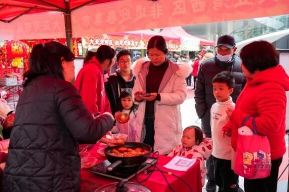 整場活動共集結(jié)了非遺美食品嘗區(qū)、非遺項目體驗區(qū)、春聯(lián)送福區(qū)、七巧工作坊、拍全家福區(qū)等14個非遺集市互動區(qū)。同時七巧工作坊可體驗可購買,讓慈善文化與非遺文化聯(lián)動融合。