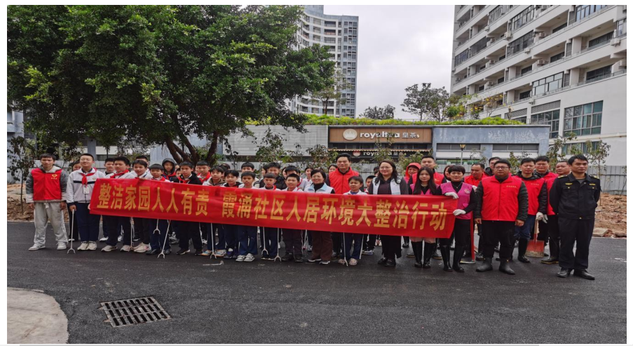 2024年3月11日,霞涌社區(qū)全體工作人員聯(lián)合霞涌第一小學(xué)學(xué)生開展“小手拉大手,干凈一起守,學(xué)生齊齊助力”志愿服務(wù)人居環(huán)境整治行動。