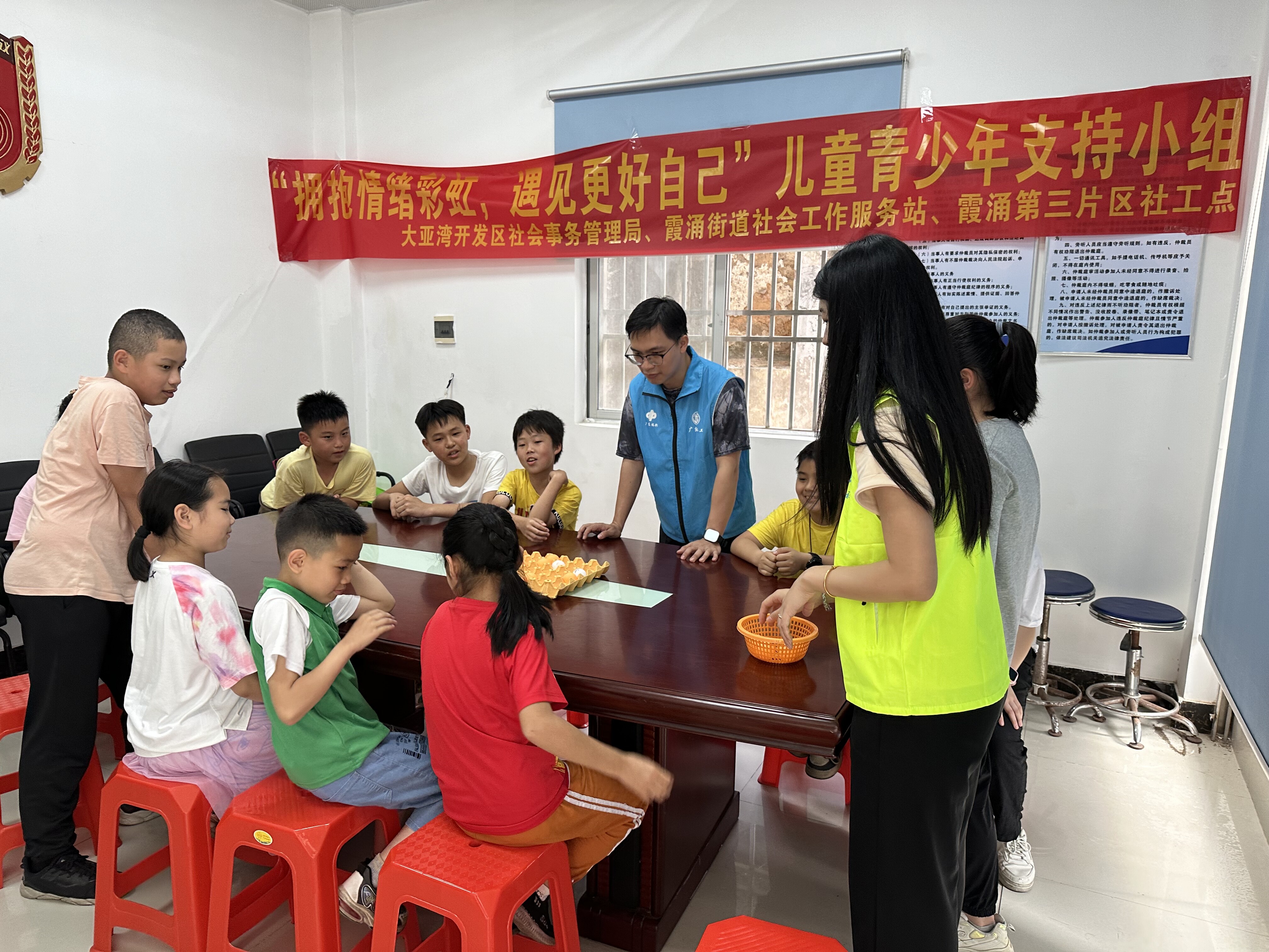 為了幫助兒童青少年正確認(rèn)識(shí)情緒,學(xué)會(huì)管理自我情緒,霞涌街道社會(huì)工作服務(wù)站聯(lián)合霞涌第三片區(qū)社工點(diǎn),于2024年4月中旬聯(lián)合開(kāi)展了為期五天的“擁抱情緒彩虹,遇見(jiàn)更好自己”兒童青少年支持小組系列活動(dòng),共服務(wù)54人次。