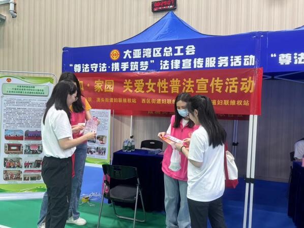 為協(xié)助推進(jìn)大亞灣區(qū)法治建設(shè),切實(shí)增強(qiáng)職工群眾法律意識和法治觀念,大亞灣區(qū)婦聯(lián)聯(lián)合西區(qū)街道婦聯(lián)維權(quán)站、澳頭街道婦聯(lián)維權(quán)站和霞涌街道婦聯(lián)維權(quán)站工作人員在大亞灣區(qū)奧林匹克體育公園(綜合館)開展“惠和·家園”關(guān)愛女性普法宣傳活動。