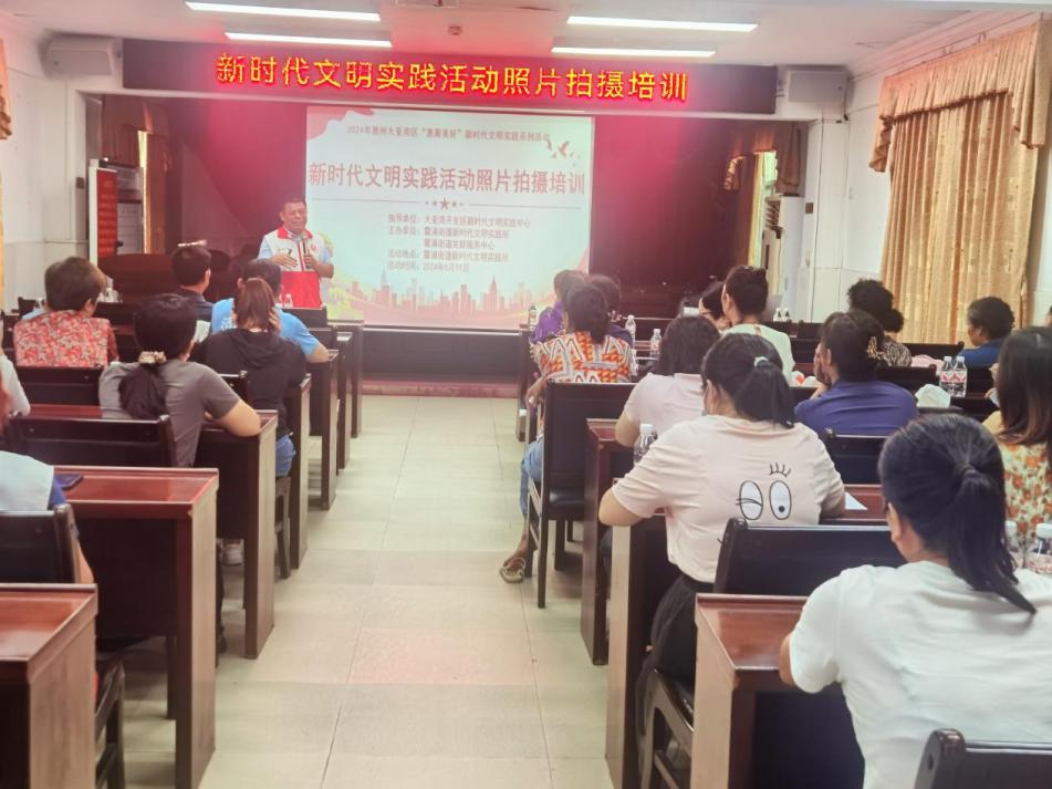 有多年新聞攝影經(jīng)驗(yàn)、惠州志愿者風(fēng)采攝影比賽獲獎(jiǎng)?wù)吖袼筛蠹乙黄鸱窒怼皵z影的基本構(gòu)圖、手機(jī)常用的拍攝功能”等手機(jī)攝影基礎(chǔ)知識點(diǎn),并對標(biāo)新時(shí)代文明實(shí)踐活動(dòng)照片拍攝要求,學(xué)習(xí)《人民日報(bào)》刊登的《大雨中的堅(jiān)守》《溫暖上學(xué)路》《“虎頭帽”迎虎年》等優(yōu)秀作品中的取景、構(gòu)圖和意境,同時(shí),精選霞涌新時(shí)代文明實(shí)踐志愿服務(wù)隊(duì)志愿者在霞涌“媽祖誕”和“楊包廟會(huì)”民俗活動(dòng)中拍攝的優(yōu)秀照片進(jìn)行點(diǎn)評。