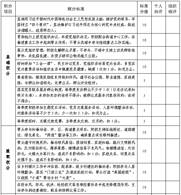 農(nóng)村星級(jí)黨員積分制考評(píng)標(biāo)準(zhǔn)