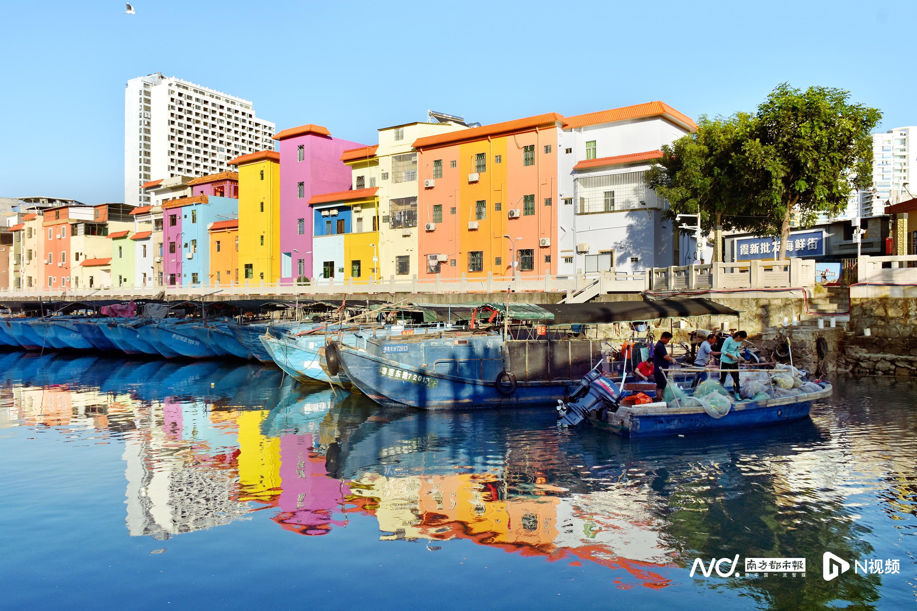 近期,日光溫柔,惠州大亞灣霞涌包禾塘岸邊的彩色房子倒映在波光粼粼的水面上,仿若一幅色彩鮮亮的油畫(huà)。漁船陸續(xù)歸來(lái),靠岸后漁民整理漁網(wǎng)。