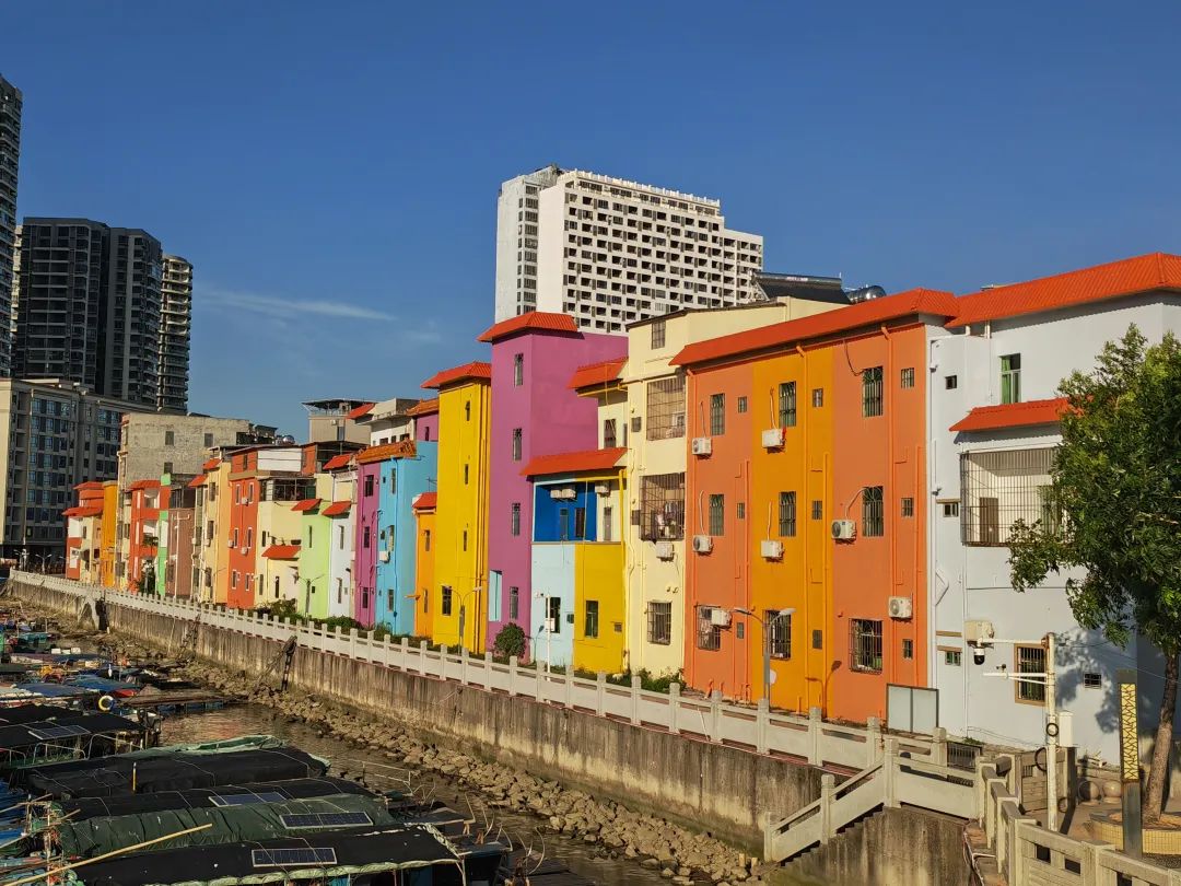 走進新村村,村子入口煥然一新,巷道干凈整潔。在包禾塘東側(cè),一棟棟房屋的外立面被粉刷成濱海藍、海島綠和沙灘黃等顏色,如同一顆顆彩色的糖果,吸引了不少游客拍照?!艾F(xiàn)在是淡季,房價相當于打了五折?!眮碜詮V州的游客劉先生表示,在這里不僅能欣賞濱海風(fēng)光、漁家風(fēng)情,還能品嘗到漁家湯圓、糍粑、海鮮等特色食品。